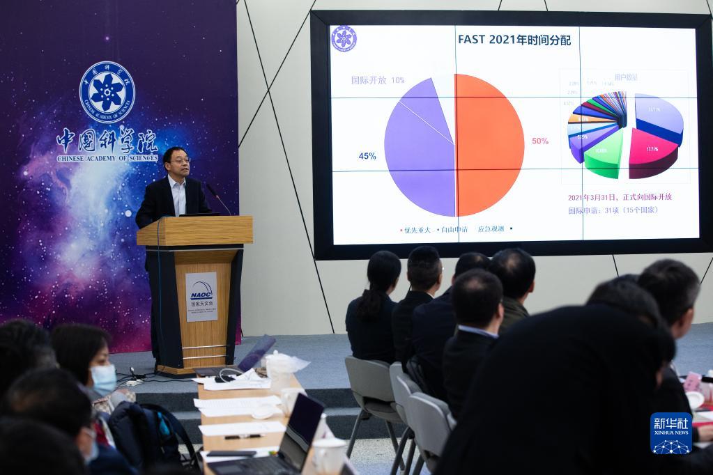 FAST運行和發展中心常務副主任、總工程師姜鵬介紹,2021年3月31日,FAST正式向全球開放共享,向全球天文學家征集觀測申請。征集收到來自不同國家共7216小時的觀測申請,最終14個國家(不含中國)的27份國際項目獲得批準,并于2021年8月啟動科學觀測。