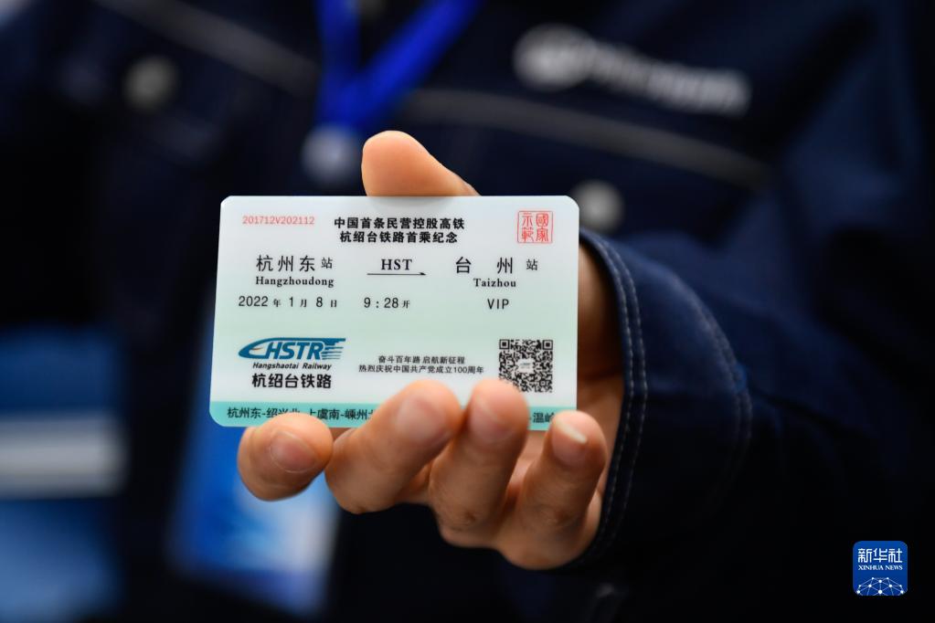1月8日,受邀乘坐杭臺高鐵首發列車的建設者代表展示列車首乘紀念票。新華社記者 黃宗治 攝