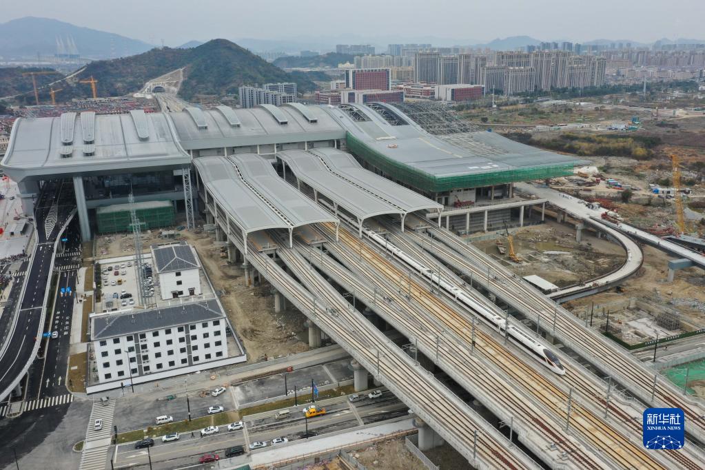 1月8日,杭臺高鐵首發列車從臺州站駛出。新華社記者 黃宗治 攝