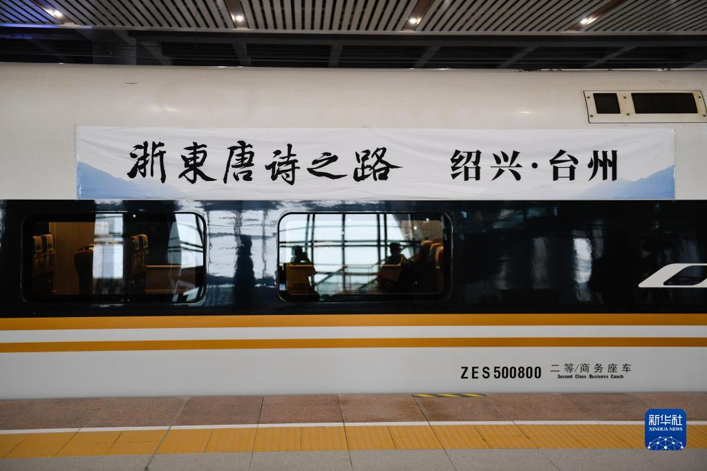 剡溪蘊秀異,欲罷不能忘。歸帆拂天姥,中歲貢舊鄉……在裝飾一新的首發列車上,一首首這樣的古詩,記錄著杭臺高鐵沿線的各個站點。