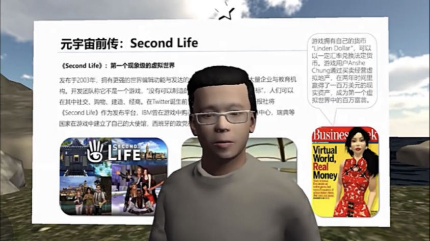 清華大學新聞與傳播學院教授沈陽的虛擬人正在做關于元宇宙的演講。受訪者供圖
