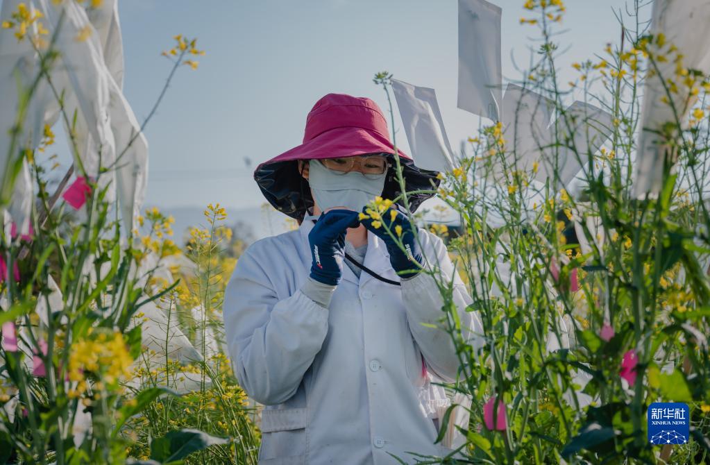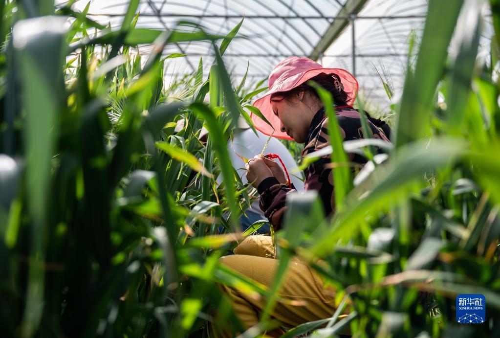 1月11日,元謀縣青稞育種和加代擴繁基地的工作人員在為青稞授粉。新華社記者 王冠森 攝