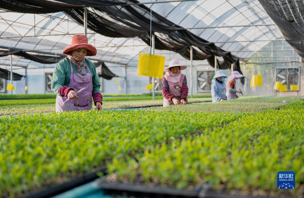 1月11日,工人在云南元謀現代種業科技園內進行育苗工作。新華社記者 王冠森 攝