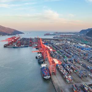 江蘇連云港港集裝箱碼頭一派繁忙(2021年12月1日攝,無人機照片)。新華社發(司偉攝)