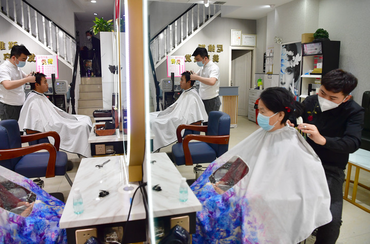 1月20日,在西安曲江新區一家理發店內,理發師正在為市民理發。新華社記者邵瑞攝