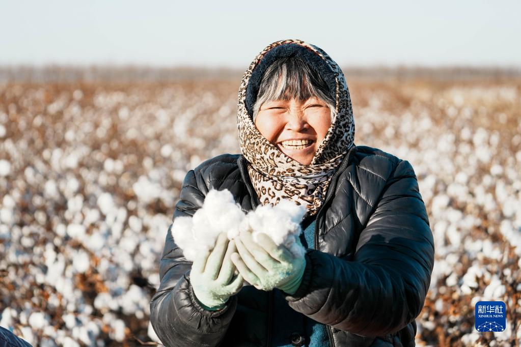 山東省無棣縣景國農機服務專業合作社棉農張元梅在棉田里采摘棉花(2021年12月1日攝)。新華社記者 朱崢 攝