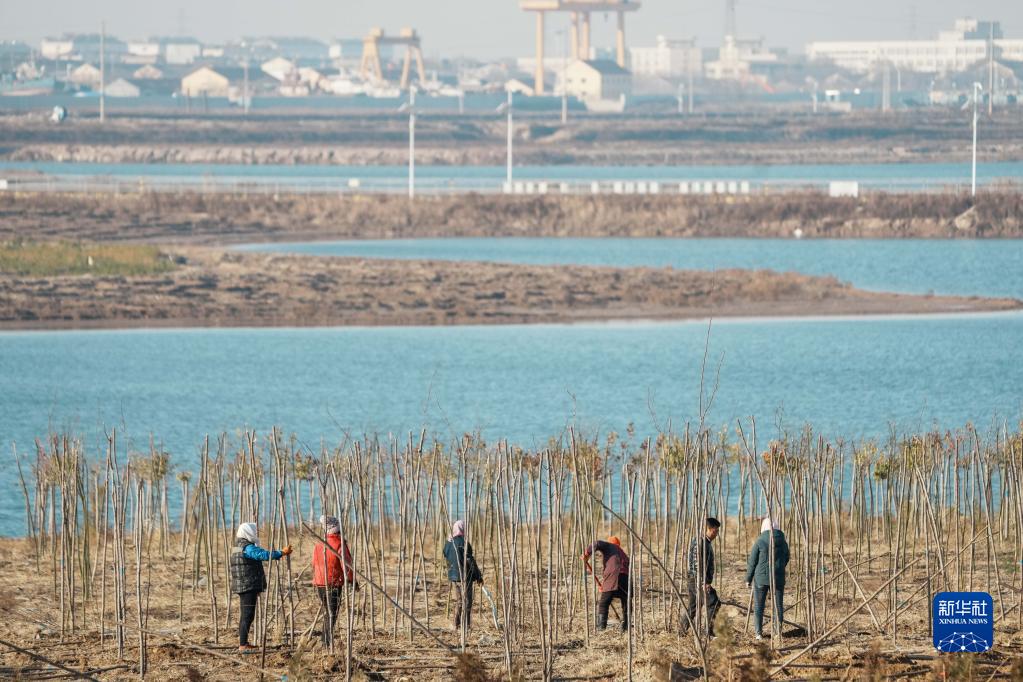 村民們在山東壽光羊口港種植樹木(2021年12月2日攝)。新華社記者 朱崢 攝