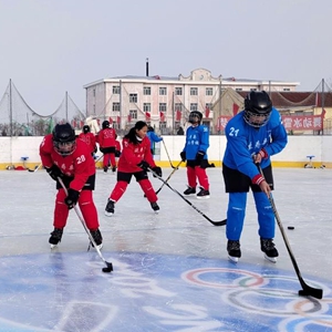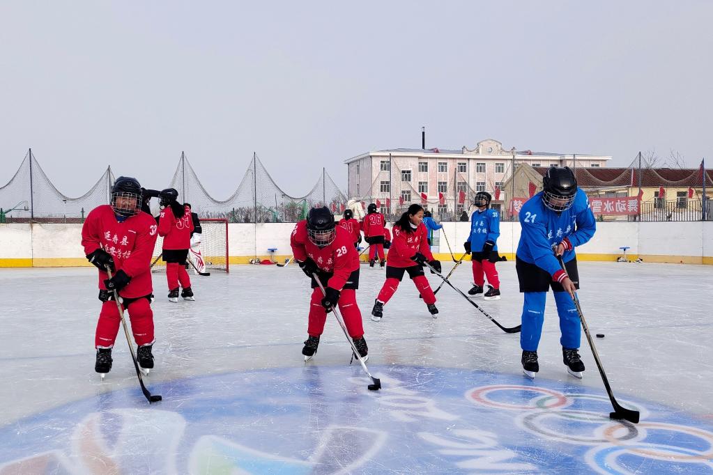 哈爾濱市延壽縣延安學校開展冰球活動。(受訪者供圖)