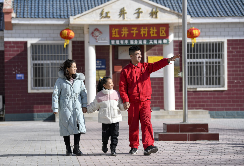 在他決定春節期間留守村里值班后,妻子帶著女兒前來陪他,一家人開始了駐村的新年生活。