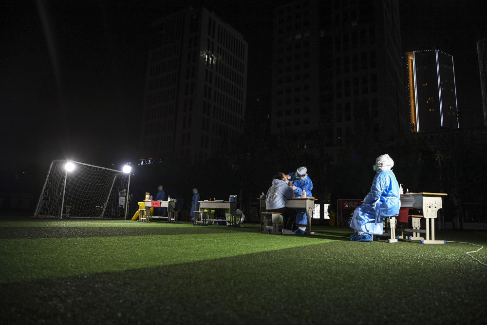 夜幕下,分散在城市街頭的采樣點閃著微光,醫務人員還堅守在崗位上忙碌著。這一處處光芒,點亮了抗疫寒夜。