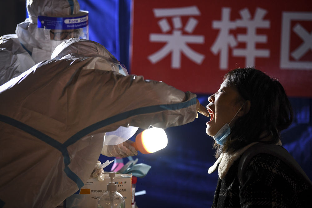 ↑2021年10月23日,在寧夏銀川市興慶區鳳凰北街采樣點,寧醫大總院全科醫學科臨床主治醫師馬伶馨(左二)為居民進行核酸采樣。