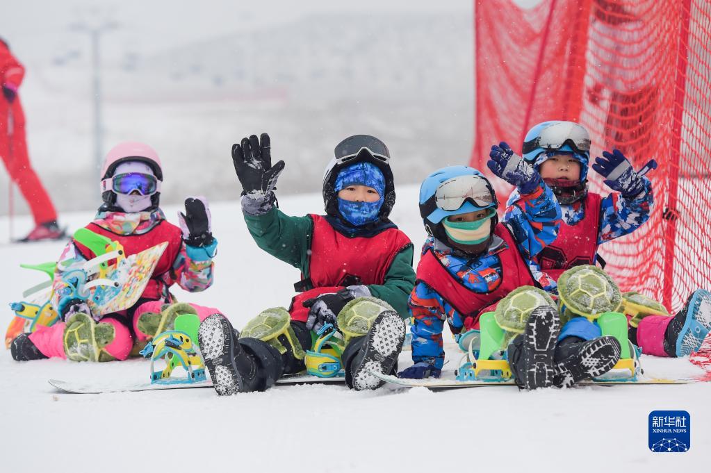 1月21日,小朋友在內蒙古烏蘭察布市大河灣滑雪場體驗滑雪。新華社記者 李志鵬 攝