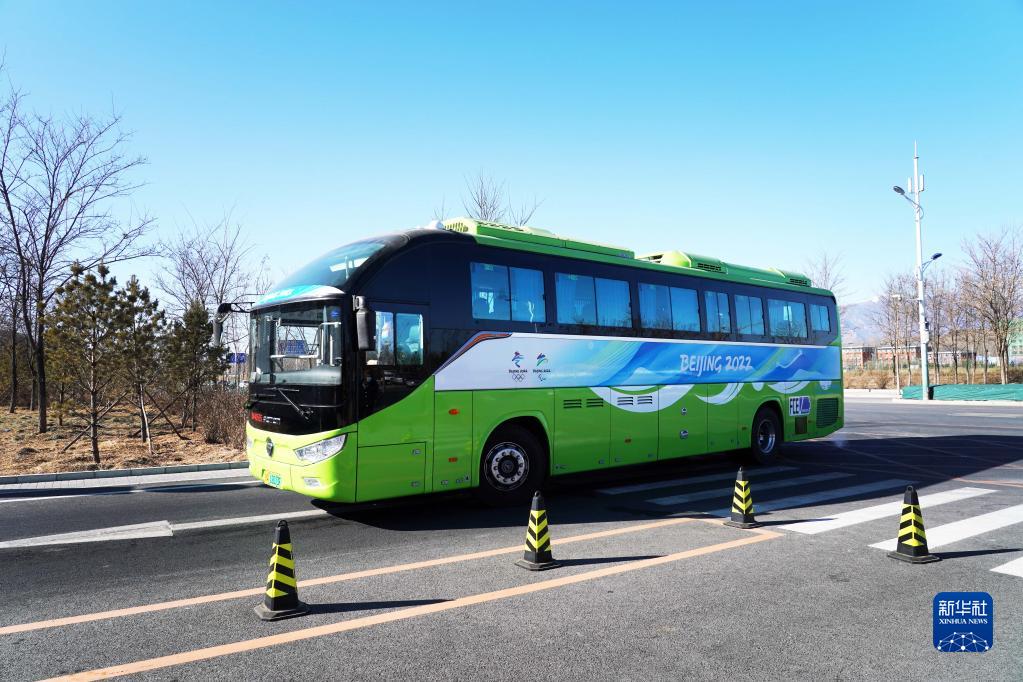 1月17日,氫燃料新能源車準備駛入北京2022年冬奧會和冬殘奧會延慶停保中心場站。新華社記者 任超 攝