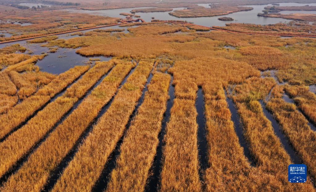 白洋淀內的蘆葦蕩(2020年11月5日攝,無人機照片)。新華社記者 牟宇 攝