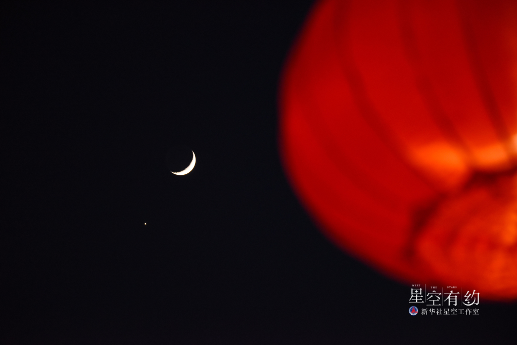 這是2017年1月2日在內蒙古呼和浩特拍攝的“金星合月”。(新華社發)
