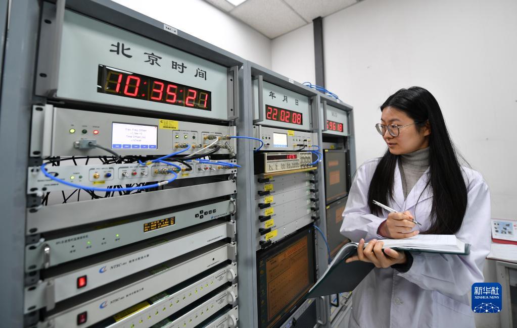 2月8日,科研人員在中國科學院國家授時中心時間頻率基準實驗室記錄數據。新華社記者 張博文 攝