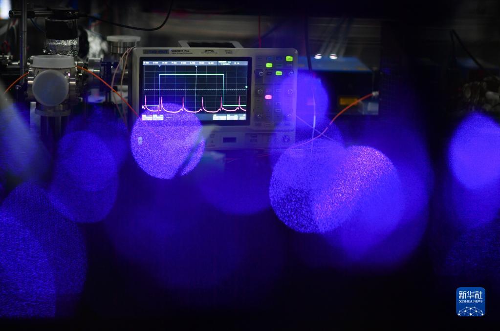 2月7日,在中國科學院國家授時中心空間鍶原子光鐘實驗室,測量儀器顯示相關實驗信號。新華社記者 張博文 攝