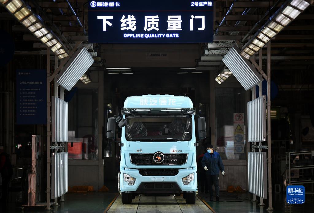 1月20日,工作人員在陜西汽車控股集團有限公司總裝車間驗收一輛裝配完畢的重型卡車。新華社記者 李一博 攝