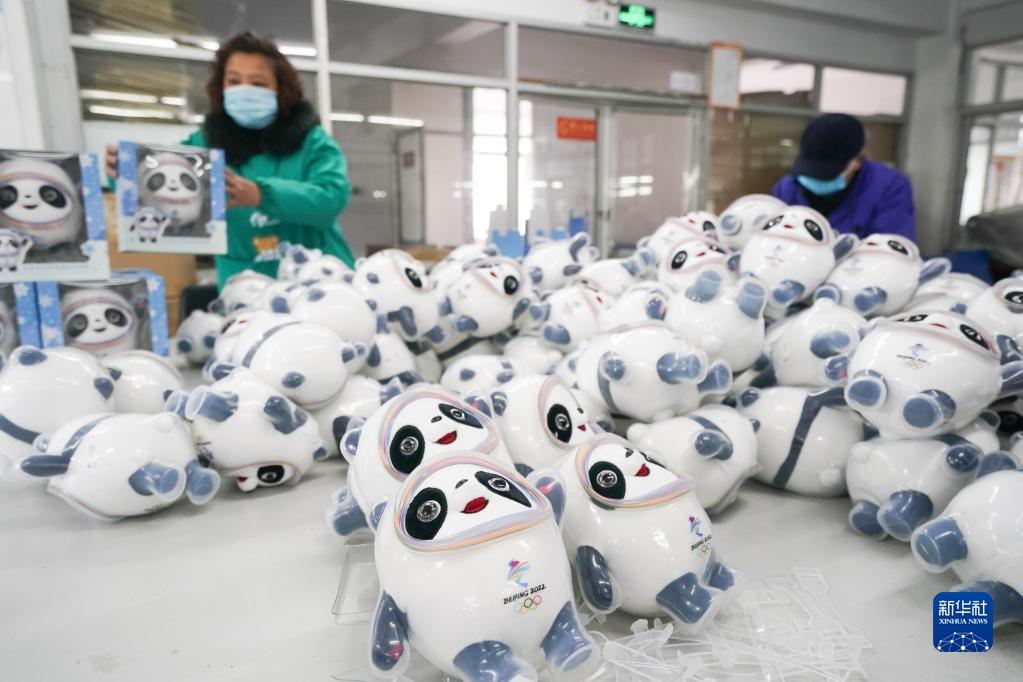 2月8日,工人在江蘇省啟東市一家北京冬奧會吉祥物“冰墩墩”特許生產商的車間里忙碌。新華社記者 季春鵬 攝