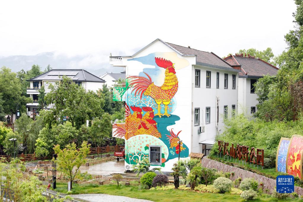 這是浙江衢州市柯城區溝溪鄉余東村建筑墻壁上的農民畫(2021年5月11日攝)。新華社發