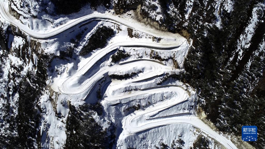 通往西藏洛扎縣拉郊鄉杰羅布村的道路(1月17日攝,無人機照片)。新華社記者 韓曦樂 攝