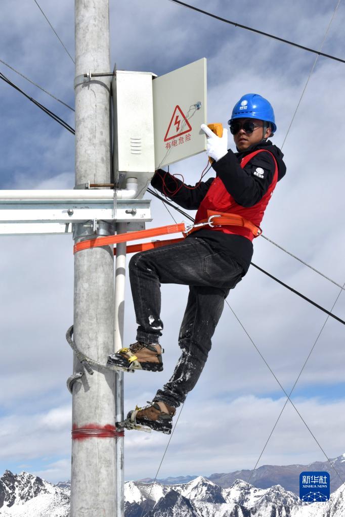 西藏洛扎縣供電公司技術員在檢修供電線路(1月17日攝)。新華社記者 陳尚才 攝