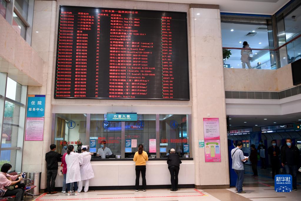 福建省三明市第一醫院輪播公示藥品耗材價格(2020年11月24日攝)。新華社記者 姜克紅 攝
