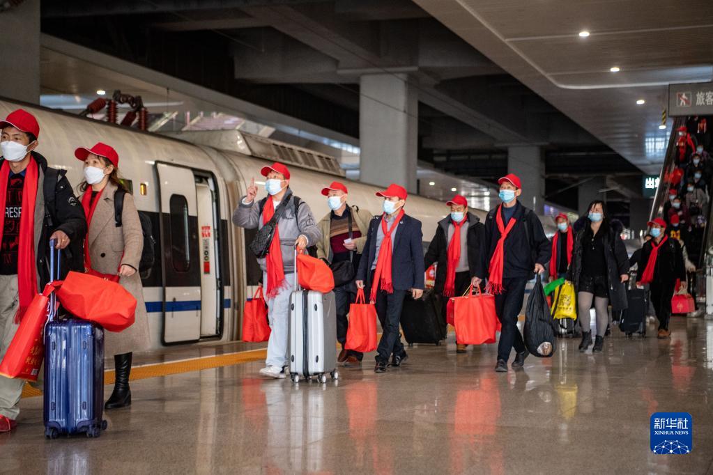 2月16日,返崗務工人員在重慶西站乘車。新華社記者 唐奕 攝