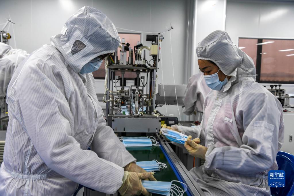 2月18日,在廣西百色市一家口罩生產企業內,工作人員在生產線上忙碌。自2月15日零時起,廣西百色市部分縣(市、區)解除“不進不出”管控措施,當地正有序復工復產。2月17日0時至24時,百色市無新增本土確診病例。新華社記者 曹祎銘 攝
