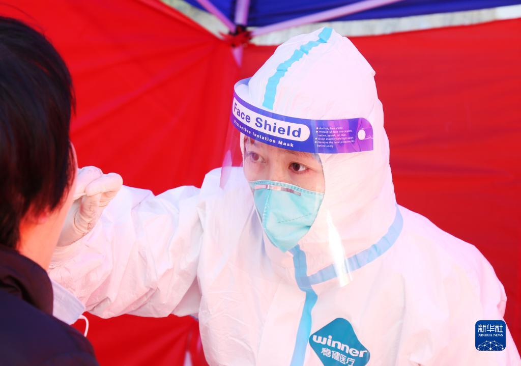 2月20日,在江蘇省蘇州市姑蘇區一核酸檢測采樣點,工作人員為市民進行核酸檢測采樣。蘇州有序開展區域核酸檢測,2月20日6時至15時,全市累計采樣583.65萬人份。持續排查管控重點人群,截至20日15時,累計追蹤排查在蘇州密接者6518人,次密接者10391人,其他風險人群71708人,已全部采樣進行核酸檢測。新華社發(朱桂根攝)