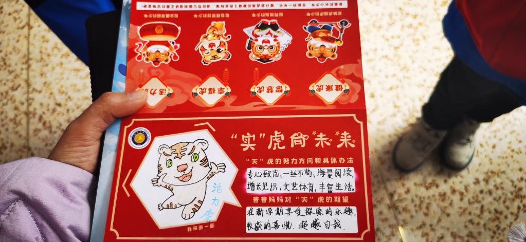 在山西省實驗小學為學生們精心準備的開學禮物中,“實”虎成長卡最受學生歡迎。成長卡上有健康虎、智慧虎、幸?;?、活力虎四只老虎形象,每個孩子可以選擇自己喜歡的“實”虎,并以此為目標,在新學期養成良好習慣。