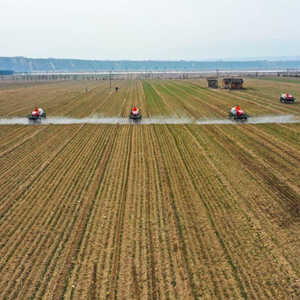 黃河灘地邊,孕育著萬畝麥田,十多輛高地隙植保車齊頭并進,噴灑著葉面肥和植物生長調節劑,讓急需營養的小麥苗飽嘗甘霖?!巴赀@個時節,老百姓只需要打除草劑,今年得多打兩次肥料?!鄙轿魇∵\城市芮城縣農機手孫亞新說。