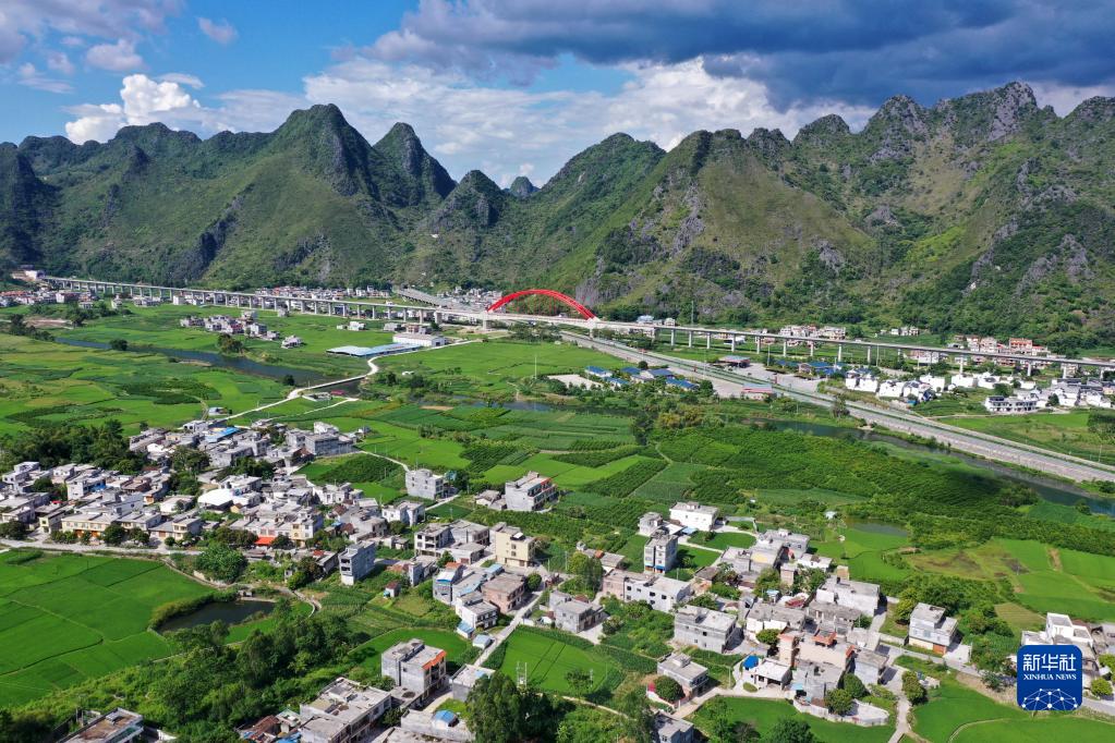這是廣西都安瑤族自治縣高嶺鎮境內的鄉村風貌(2021年8月31日攝,無人機照片)。近年來,廣西壯族自治區生態文明建設成果喜人,八桂大地一年四季生機盎然,山川處處景象宜人。新華社記者 陸波岸 攝