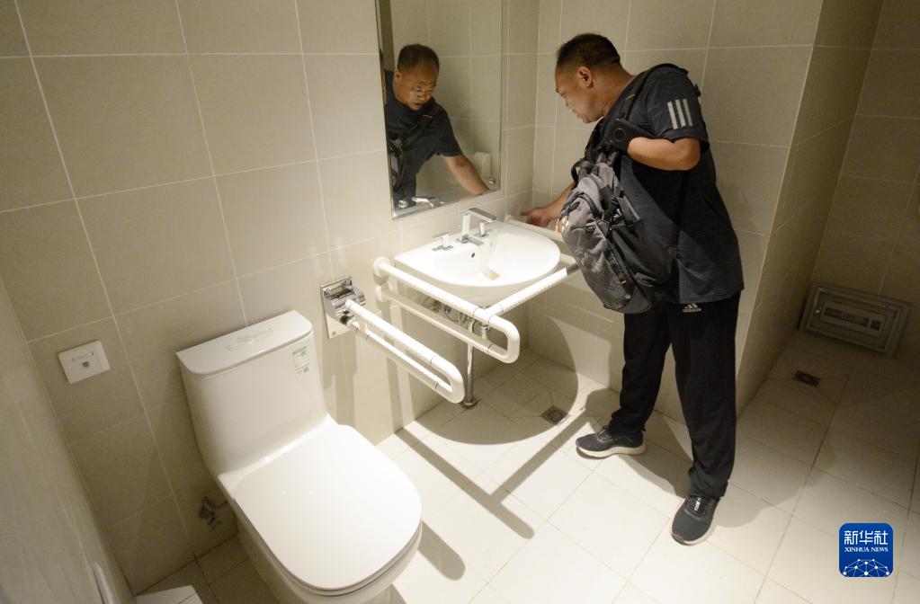 圖為無障礙專家在北京延慶賽區冬奧村檢查室內衛生間無障礙設施(2021年7月15日攝)。新華社記者 李欣 攝