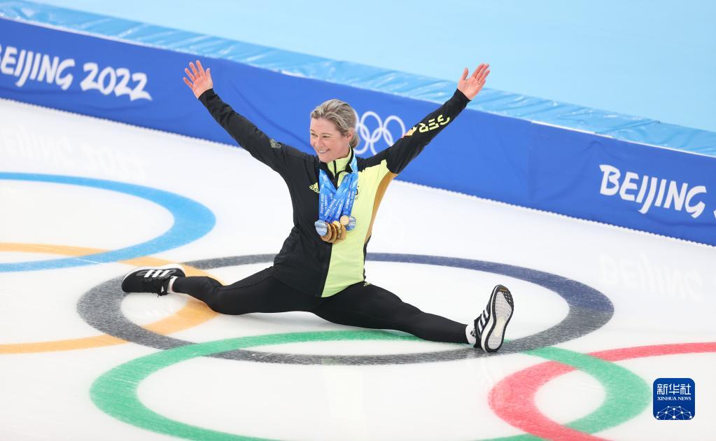 圖為八屆奧運老將德國選手克勞迪婭·佩希施泰因在北京2022年冬奧會速度滑冰全部比賽結束后留影(2022年2月19日攝)。新華社記者 丁旭 攝