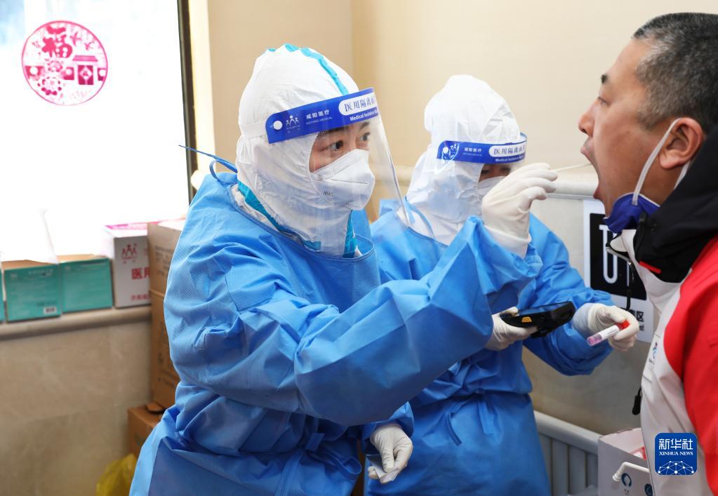 圖為醫務工作者在北京2022年冬奧會張家口賽區云頂場館群住宿區開展核酸檢測工作(2022年2月1日攝)。新華社發(武殿森 攝)