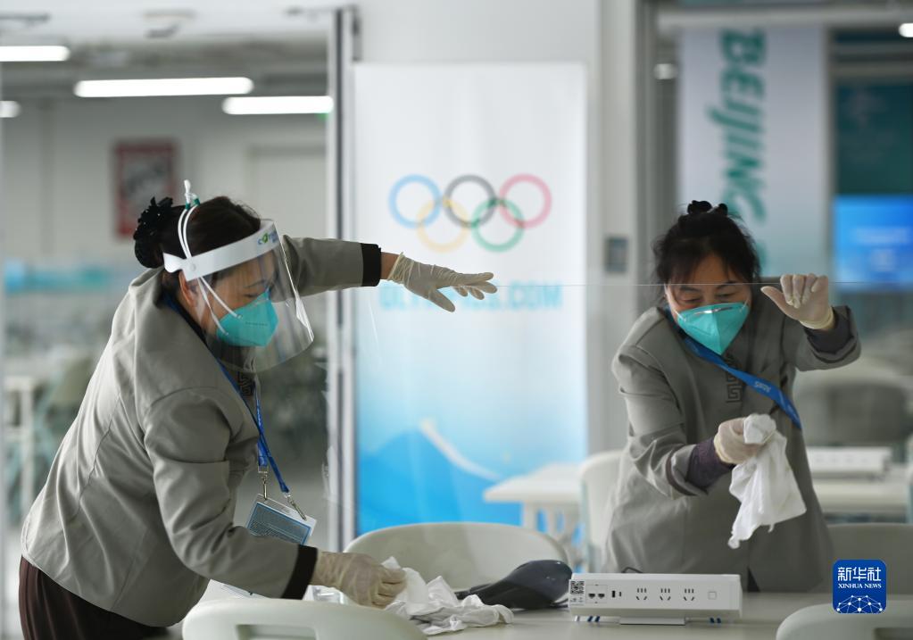 閉環內,奧運村、場館入口、運動員通道、電梯間、媒體工作間、餐廳,隨處是感應式消毒裝置,一伸手,瞬間完成手部消毒。無感式大通量體溫測量設備能監測每個人體溫,“您的體溫正?!?,播報語音令人安心。酒店、媒體中心、比賽場館都有便捷的核酸檢測點,涉奧人員就近即可完成每日一次的核酸檢測。