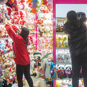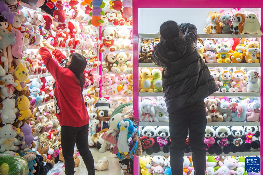 義烏市中國小商品城經過春節假期的休整后重新開市營業,這是經營戶整理貨架(2月12日攝)。新華社記者 江漢 攝