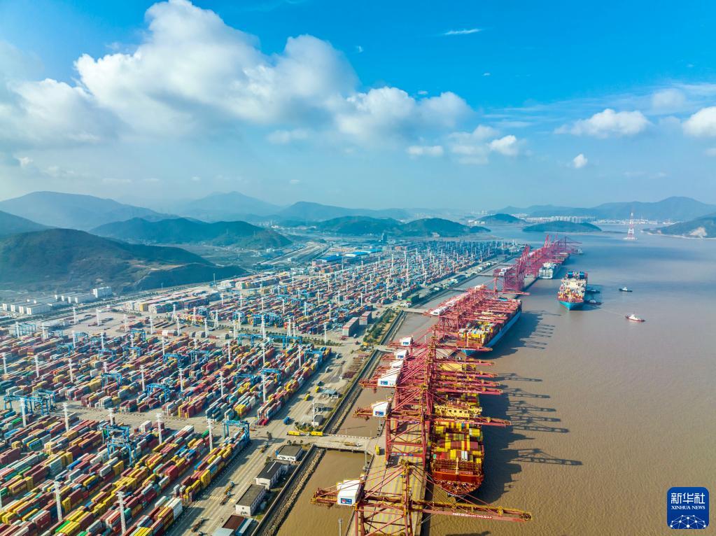 2021年12月24日拍攝的寧波舟山港穿山港區。新華社發(湯健凱攝)