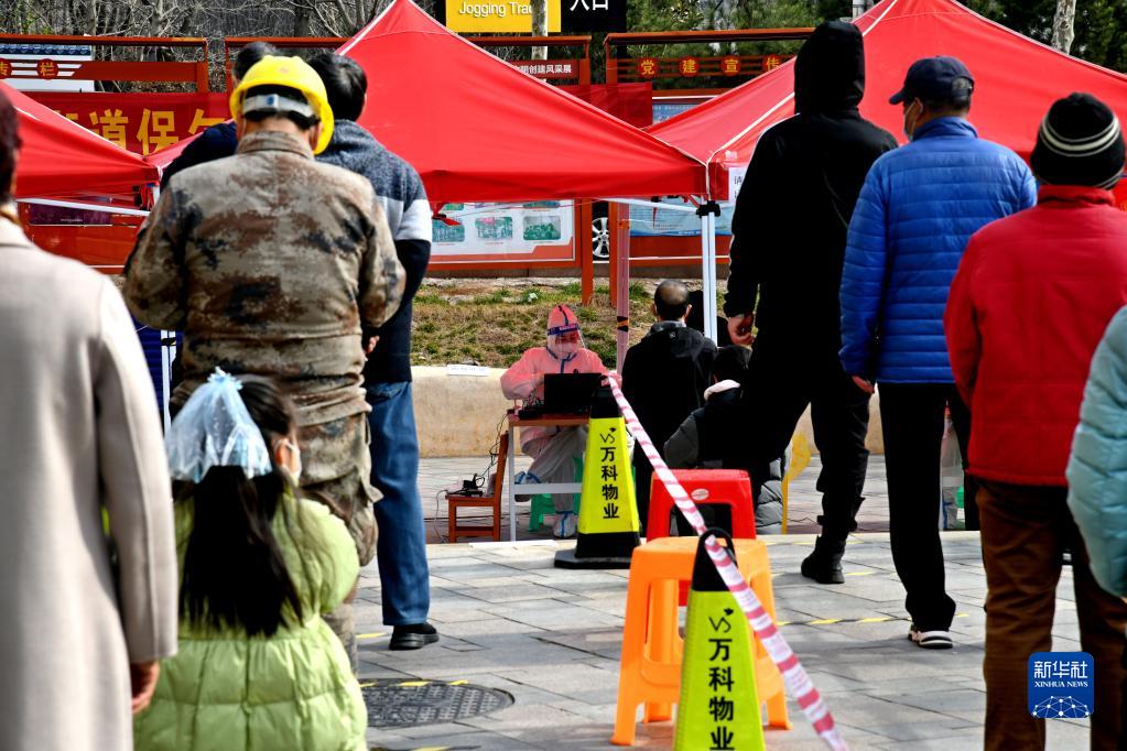 3月22日,市民在青島市北區一核酸檢測點排隊進行核酸采樣。新華社記者 李紫恒攝
