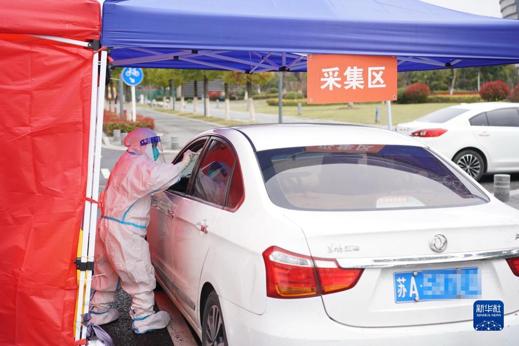 3月22日,在江蘇省南京市建鄴區核酸檢測專場現場,司機接受核酸采樣。新華社記者 季春鵬 攝
