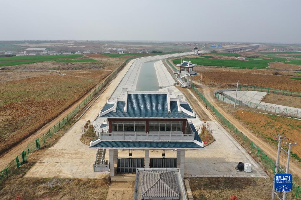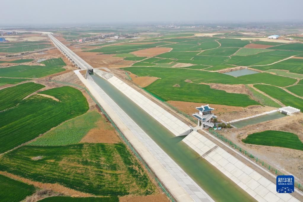鄂北地區水資源配置工程為湖北省棗陽市境內的農田灌溉送水(3月2日攝,無人機照片)。新華社發(鐘華 攝)