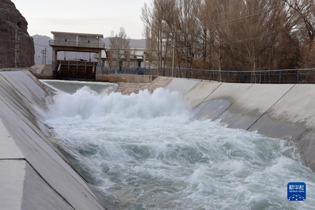 這是3月15日在甘肅省酒泉市疏勒河灌區拍攝的昌馬總干渠開灌引水。新華社發(甘肅省疏勒河流域水資源利用中心供圖)
