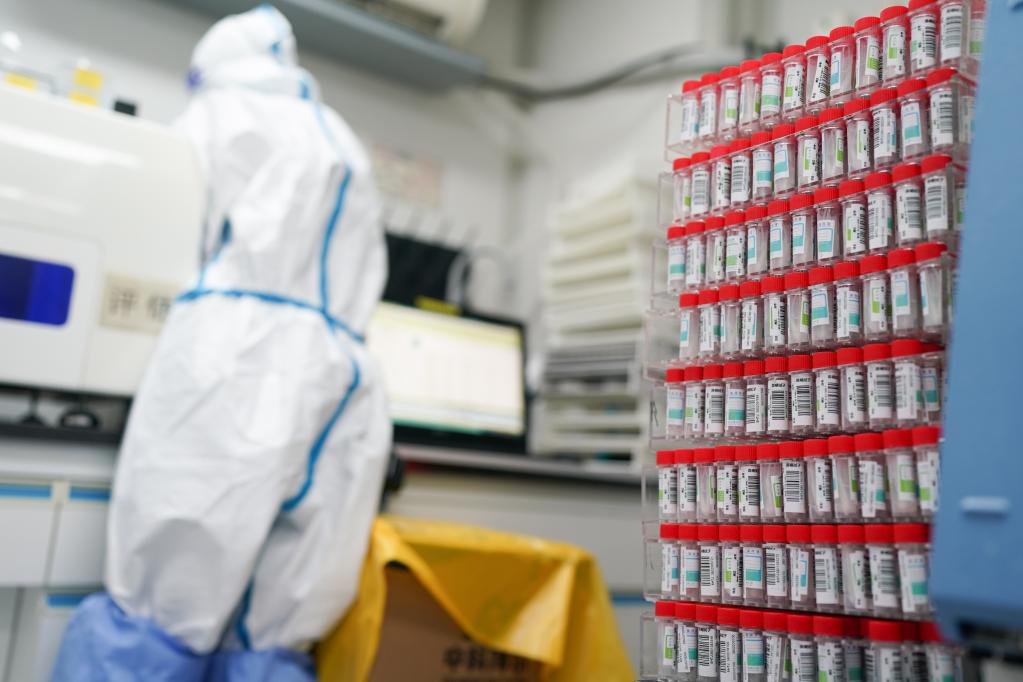 工作人員在進行核酸檢測工作(新華社記者丁汀攝)