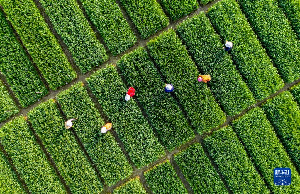 3月30日,在安徽省合肥市廬江縣白湖鎮省級現代農業示范區育種基地,農民在小麥育種田清除雜草?!⌒氯A社發(左學長 攝)