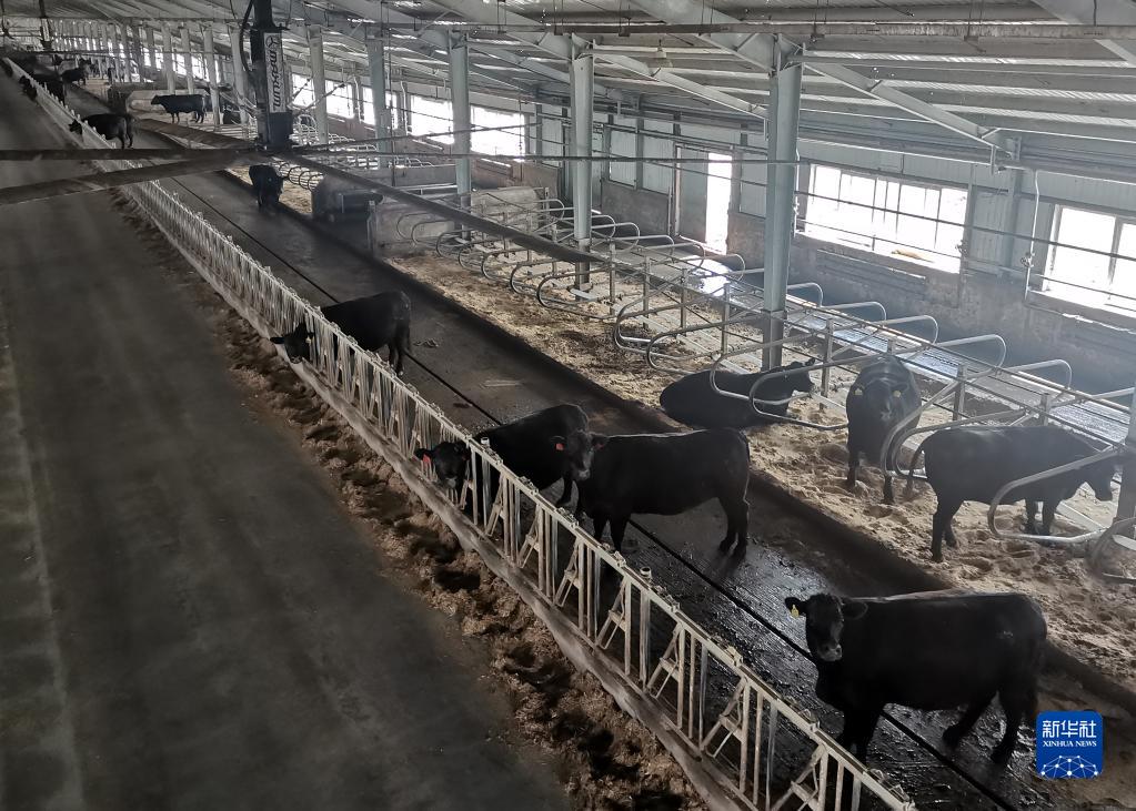 “北大倉”上,黑龍江省肇東市向陽鄉向陽村的冰城黑牛牧場,擁有8棟現代化牛舍,存欄5000多頭安格斯肉牛,周邊則是廣袤的草原。牧場負責人孫永開說,牧場的廢物處理區實現了廢物的固液分離和氧化,干濕分離處理后的牛糞可直接用于配套草原及耕地的養護,草原、牧場、養殖與加工得到了有機結合,可以提供更加優質的肉牛產品。