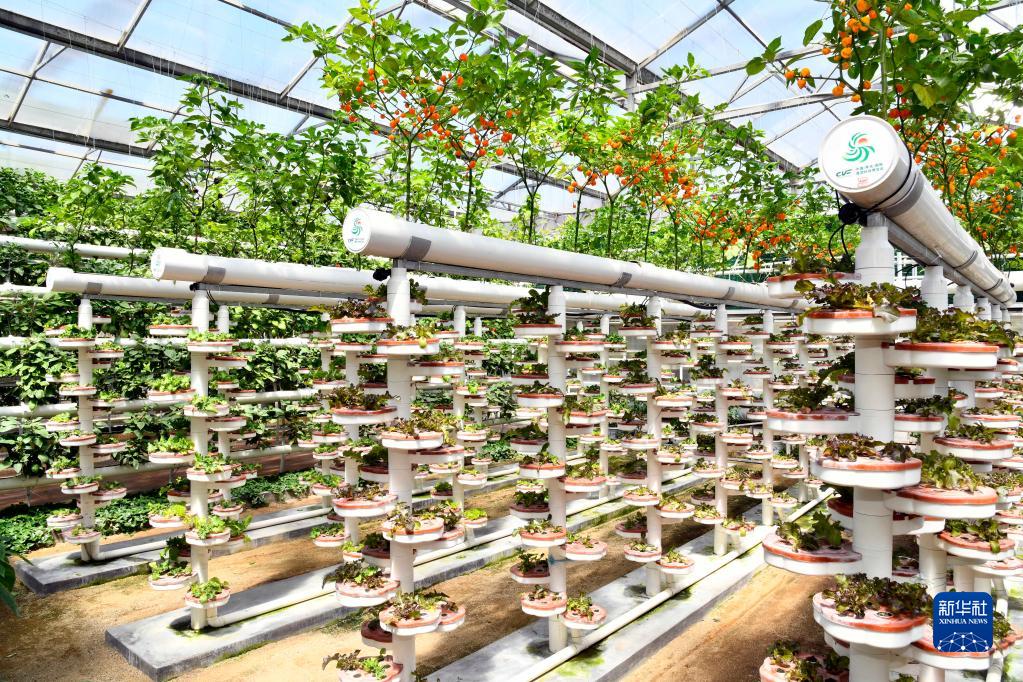 這是2020年4月20日在山東省壽光菜博會上拍攝的蔬菜無土栽培模式?!⌒氯A社記者 郭緒雷 攝