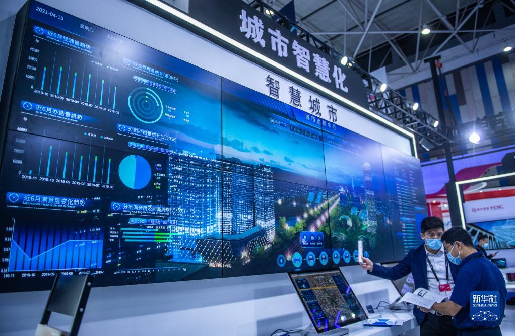 參會者在2021中國國際大數據產業博覽會上了解智慧城市治理中心(2021年5月26日攝)。新華社記者 陶亮 攝