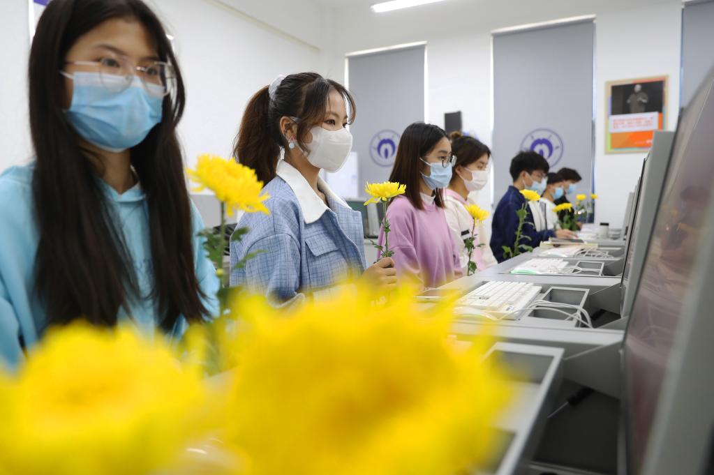 在湖南省衡陽市,南華大學的同學們參加網上祭英烈活動。新華社發(曹正平攝)