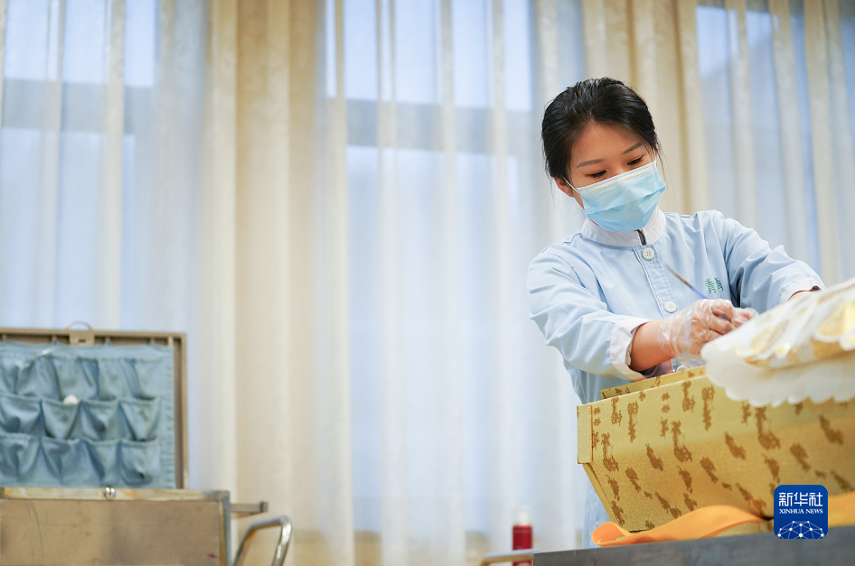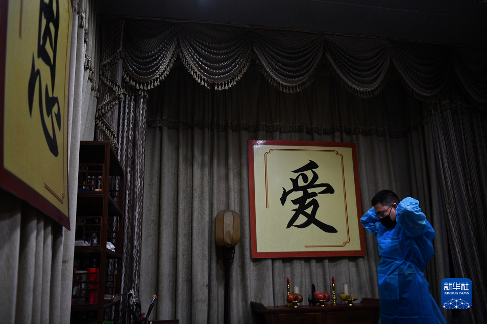 一位入殮師在為一位逝者化妝整容。新華社記者鞠煥宗攝